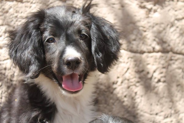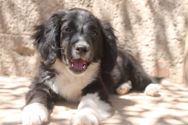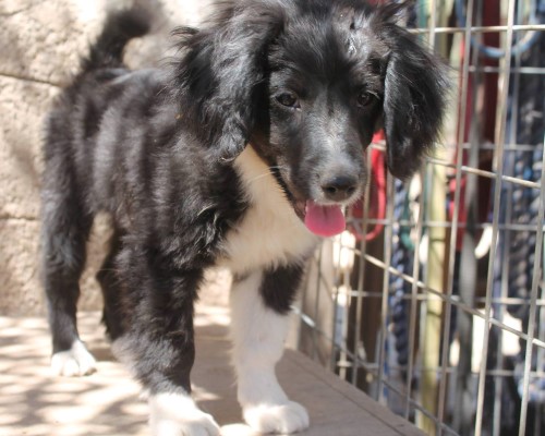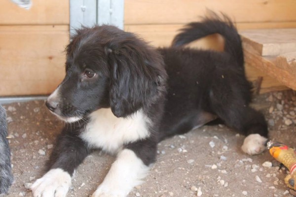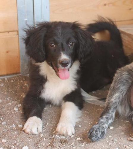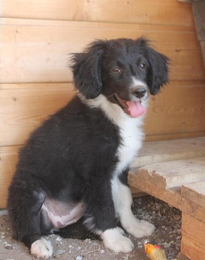 Tierheim auf Santorini. Sie ist eine süße Mischlingswelpin, die