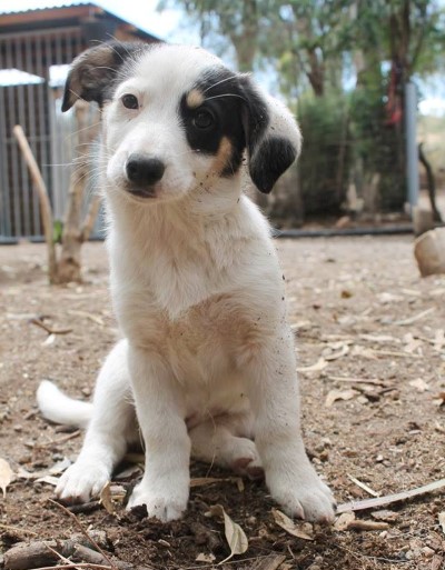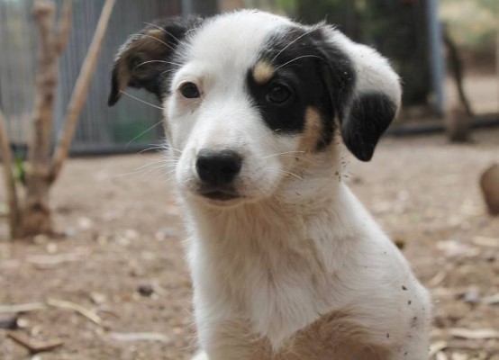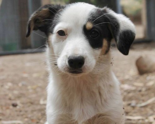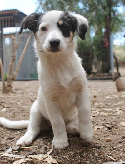 Tierheim auf Santorini. Sie ist eine bildschöne, sanfte und schlauer Mischlingswelpin,