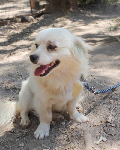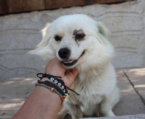 über dem Auge auf der Straße gefunden. Die Wunde ist inzwischen gut
