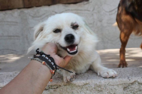 kleiner Hund. Er wurde mit einer kleinen Schürfwunde