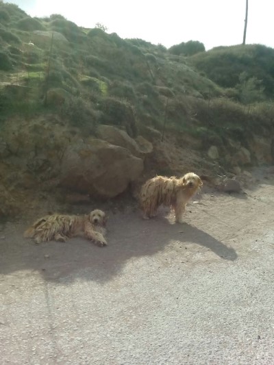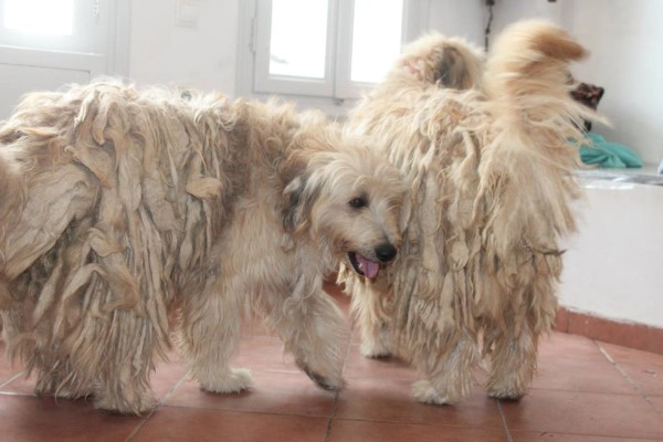 der Straße auf Santorini ausgesetzt gefunden. Beide waren extrem verfilzt und