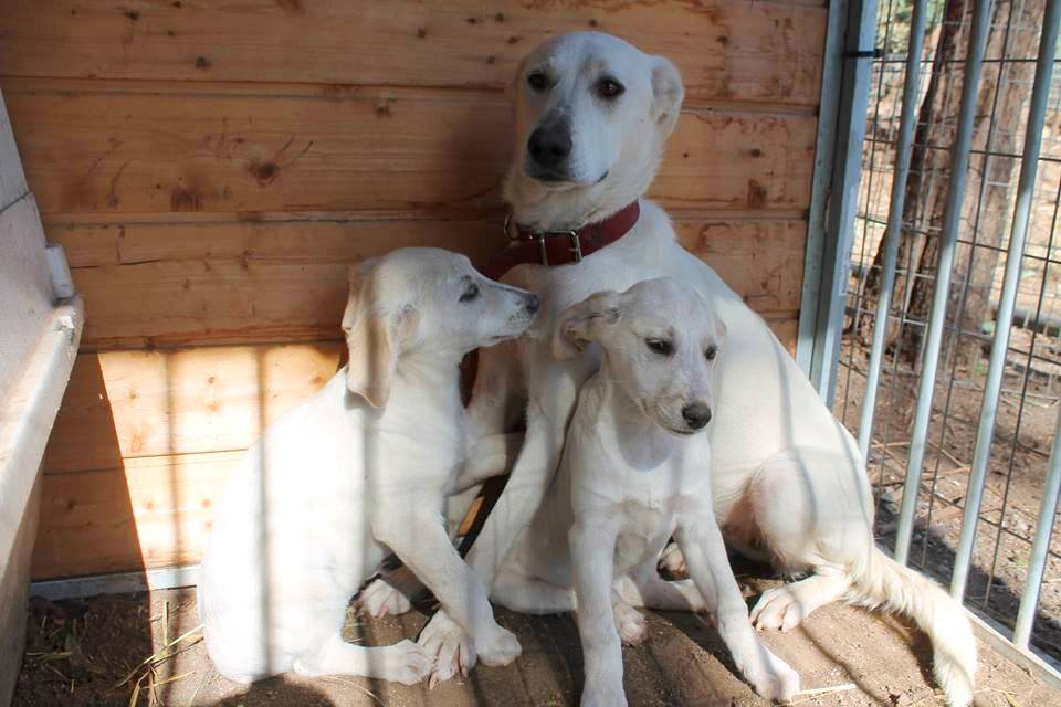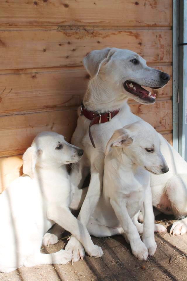 bis auf Haut und Knochen abgemagert, die Welpen waren soweit ok.