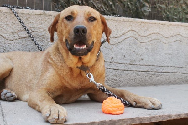 Labradormix-Hündin mit einem sanftmütigen und sehr gutmütigen Wesen.
