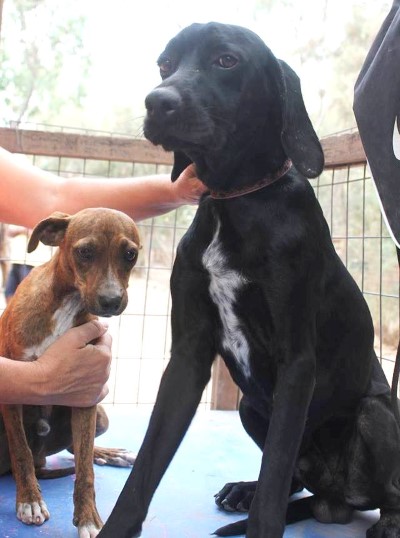 morgens ins Tierheim fuhr und dabei wie immer durch das Ort Karterados kam, sah sie dort zwei Hunde laufen. Ein mittelgroßer