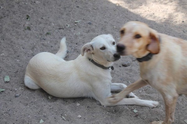 die sich sehr gut mit anderen Hunden verträgt und sanft zu jedem