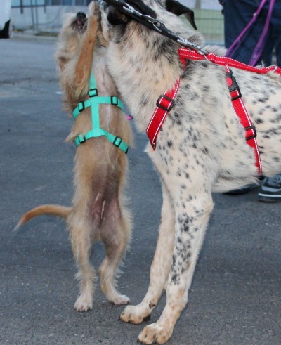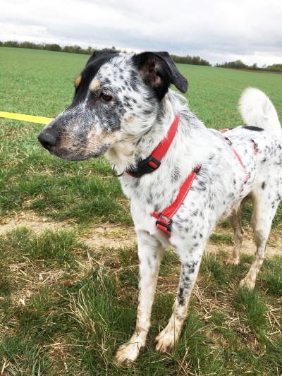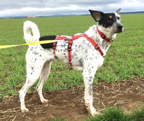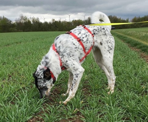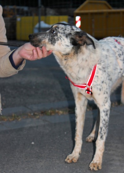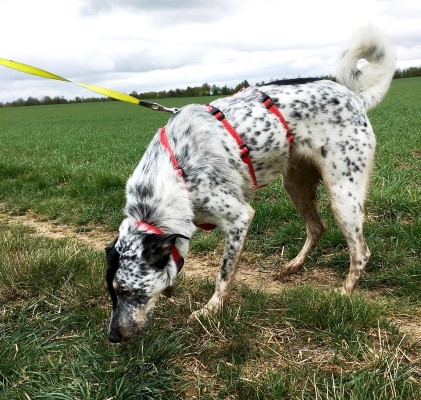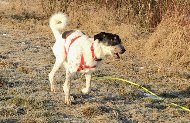 ängstlicher Ersthund. Er schließt sich gerne einem anderen Hund an