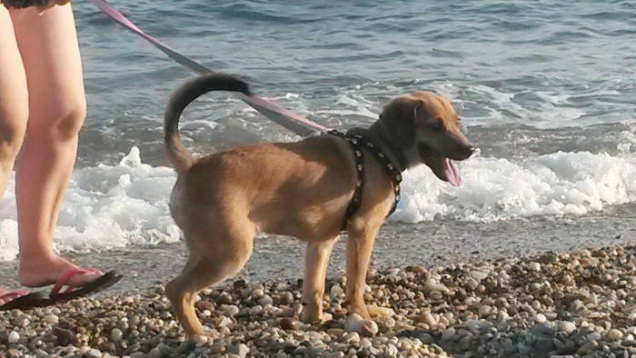 ist ein sehr lieber, aber eher ängstlicher Hund, der viel