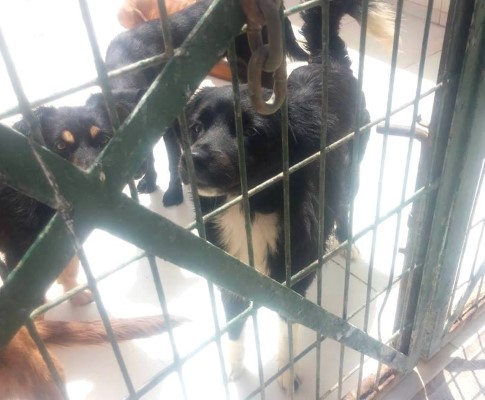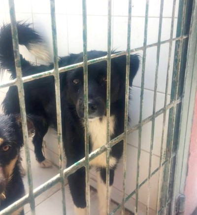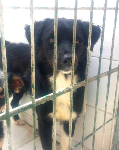 Hündin, die traurig in der Tötungsstation von Almeria saß und deren