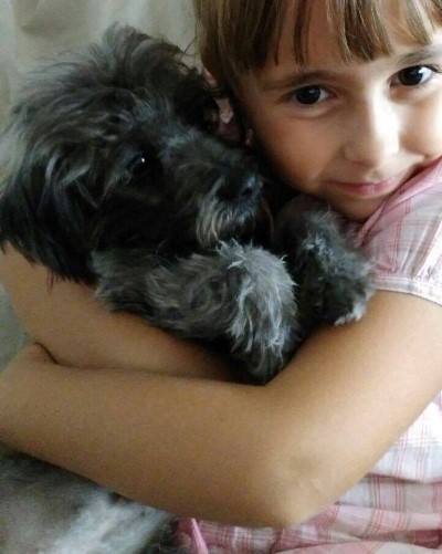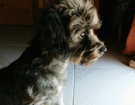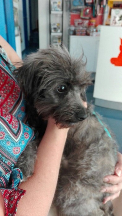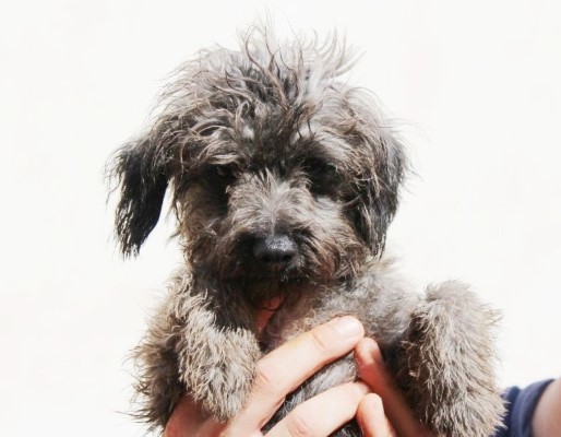 kleine Wuschelwelpin, die eine schlimme Vorgeschichte hat. Eine