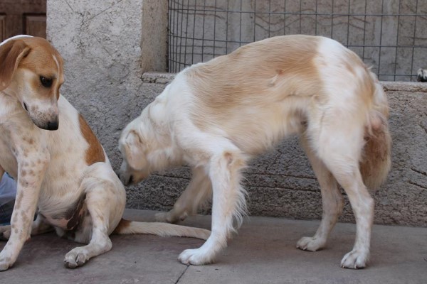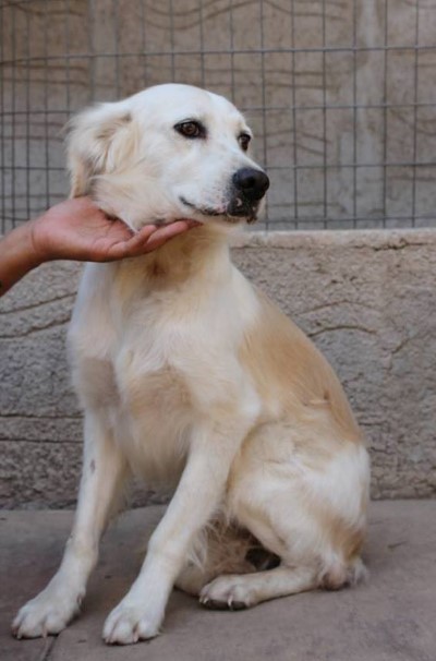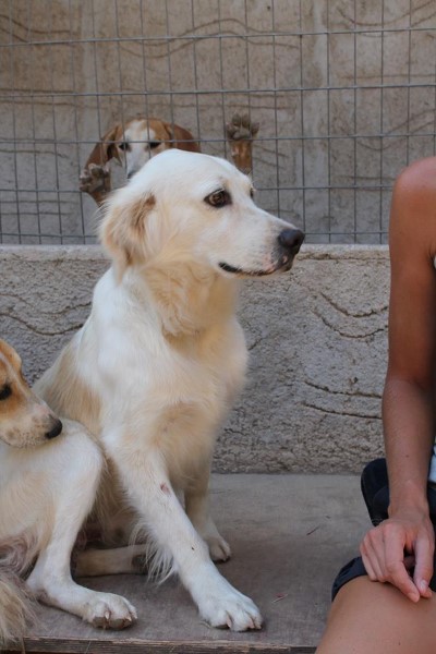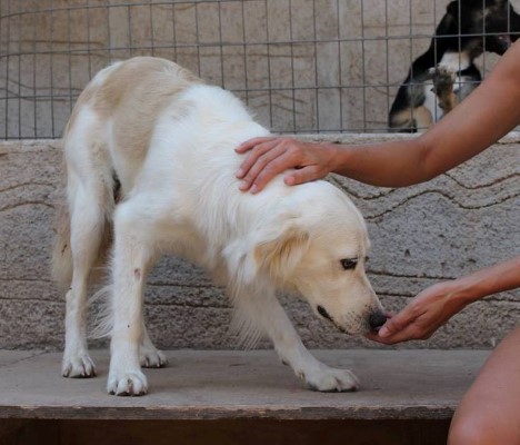 Tierheim auf Santorini. Er wurde von seiner Familie abgegeben und