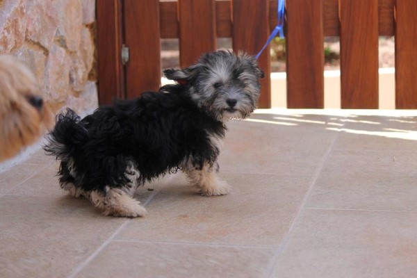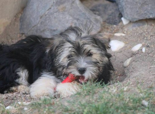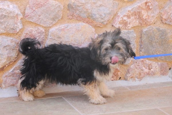 Pflegestelle auf Santorini. Er ist ein lieber kleiner Welpe mit