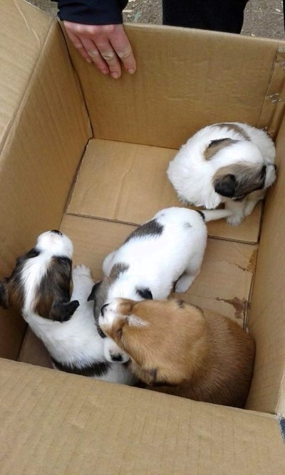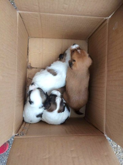 Karton vor unserem Tierheim auf Santorini. Sie waren erst 2-3 Wochen alt und