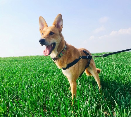Freude. Er rennt, springt und tobt wie jeder andere Hund mit vier