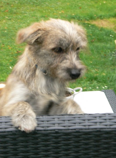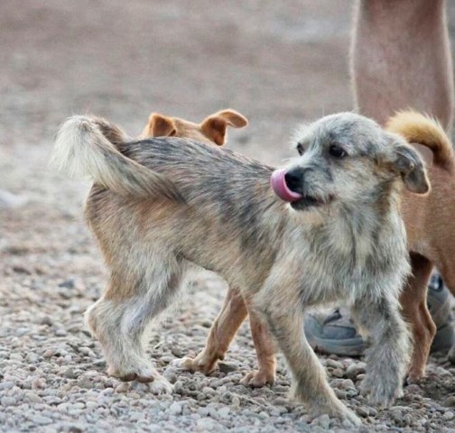 ängstlicher kleiner Hund. Jeder Besuch wird überschwänglich begrüßt
