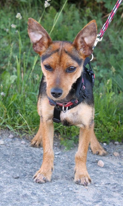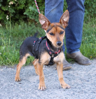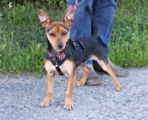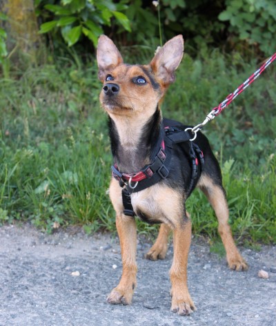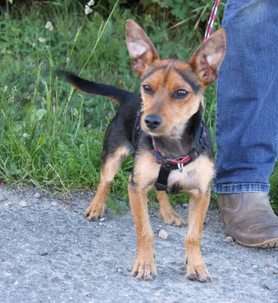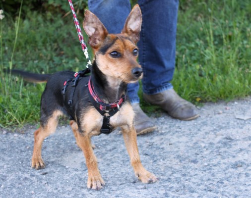 sanftmütiger Knirps, versteht sich super mit anderen Hunden, ist