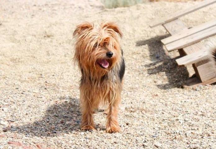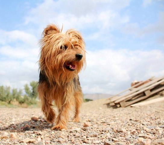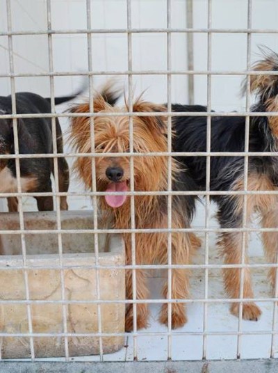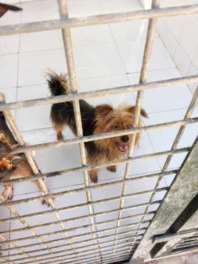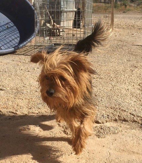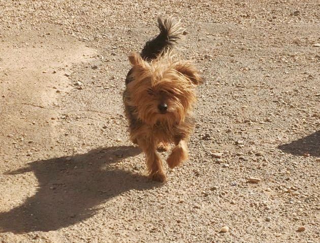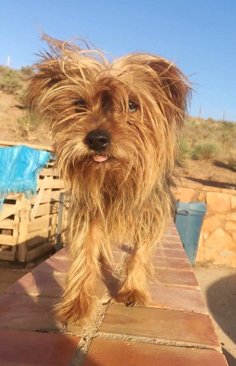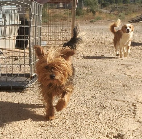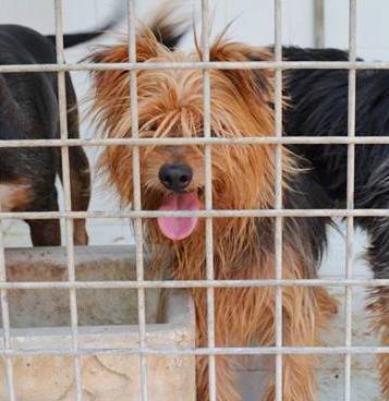 Yorkihündin, die in der Tötungsstation von Almeria saß und die wir