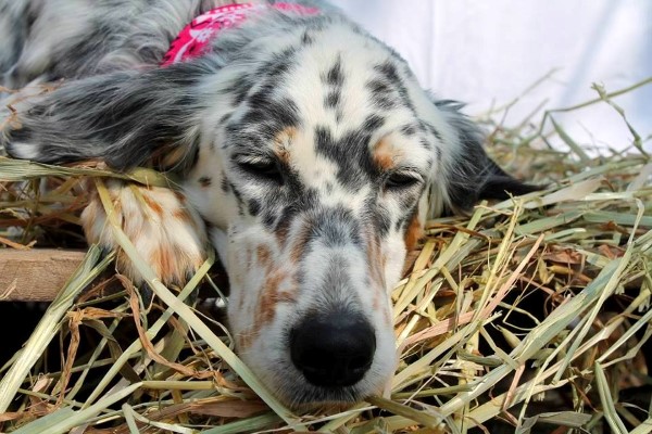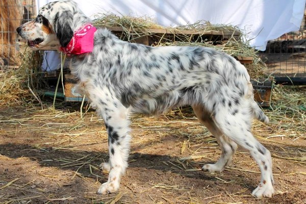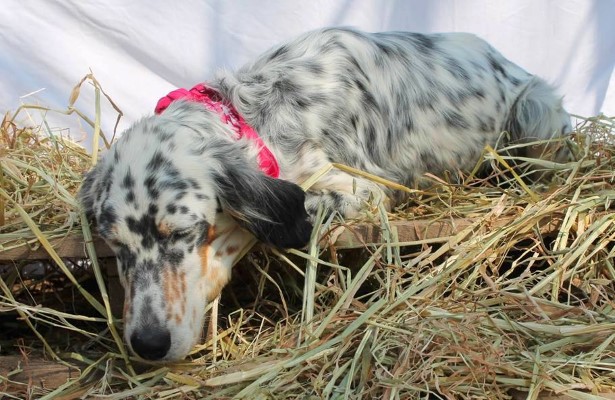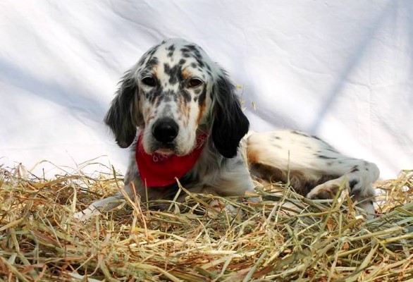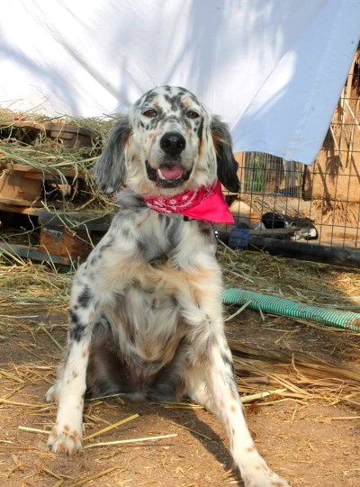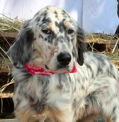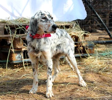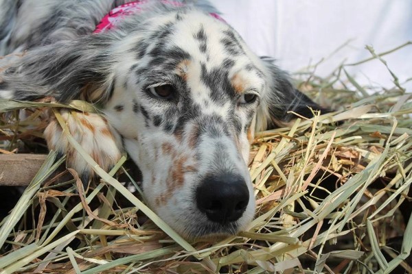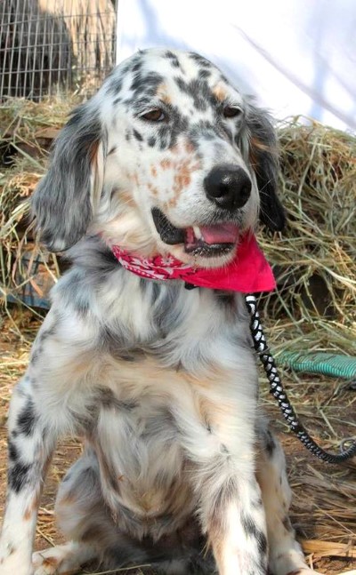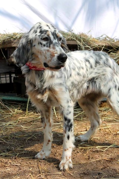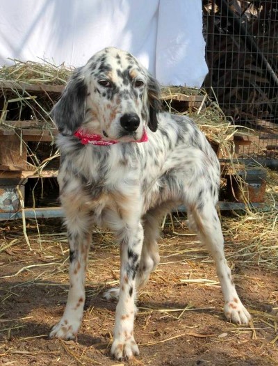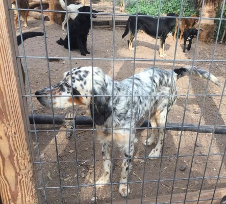 liebe und gutmütige Settermixhündin, die sich mit anderen Hunden