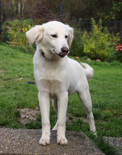 sich sehr gut mit anderen Hunden und ist verspielt und sanftmütig.