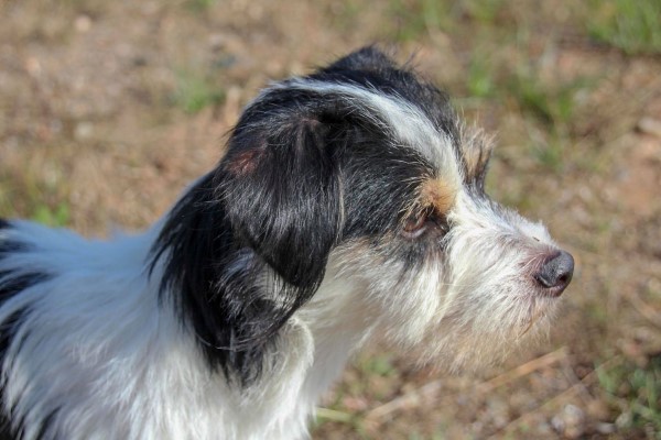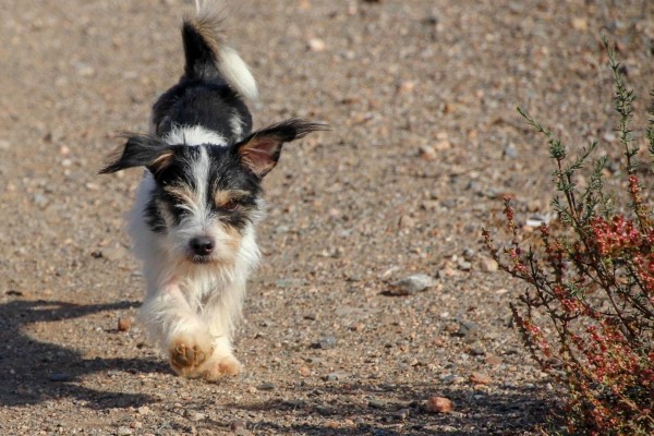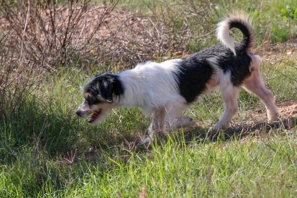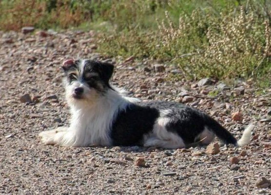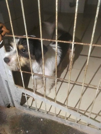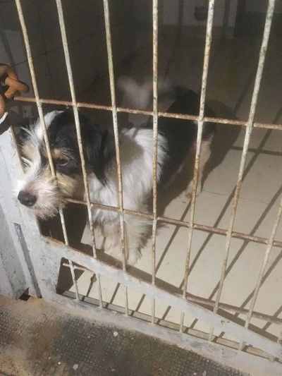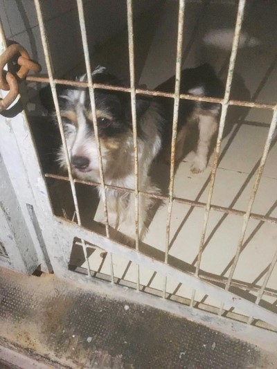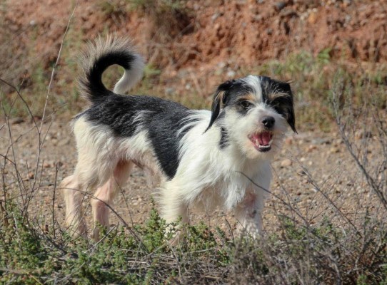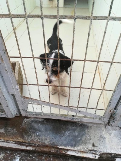 kleiner pfiffiger Rüde, der in Almeria in der Tötungsstation