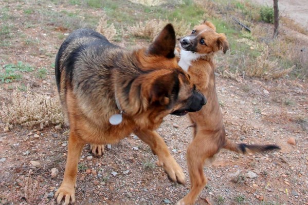 gut mit anderen Hunden und liebt es mit diesen zu toben.