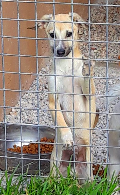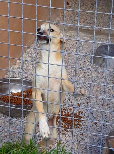 seiner Pflegestelle angekommen und wartet nun auf ein liebes