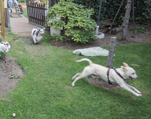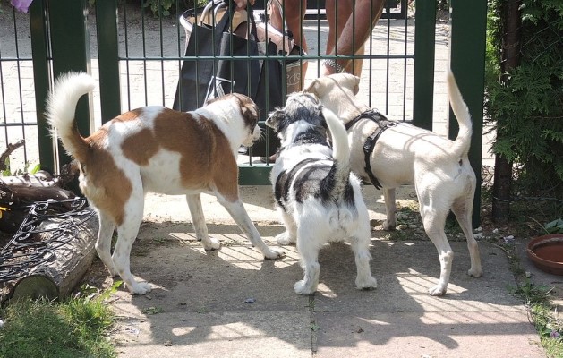 spielt sehr gerne mit anderen Hunden, egal wie groß und bleibt