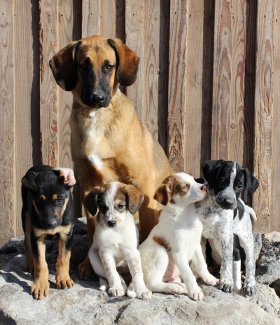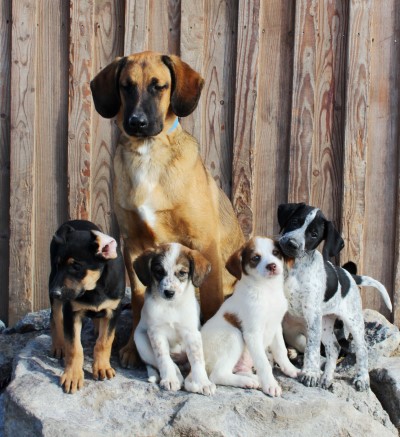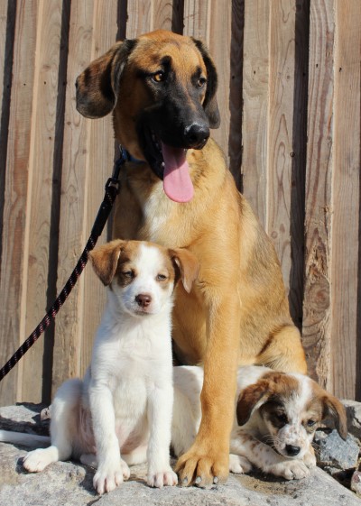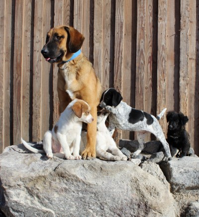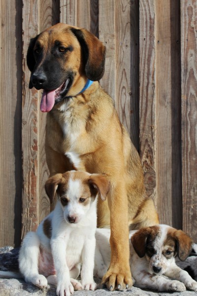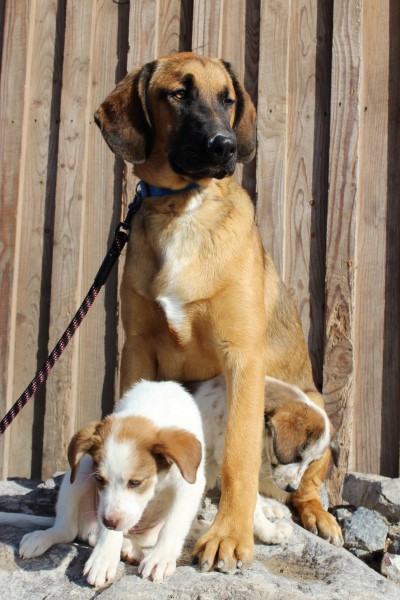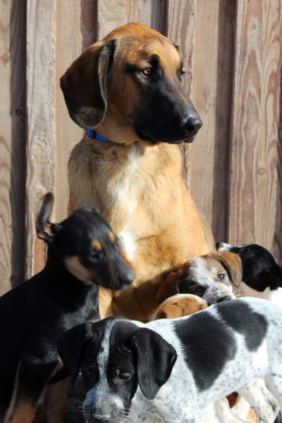 zärtlich-rücksichtsvoll mit den kleinen Welpen um, die ihn sehr