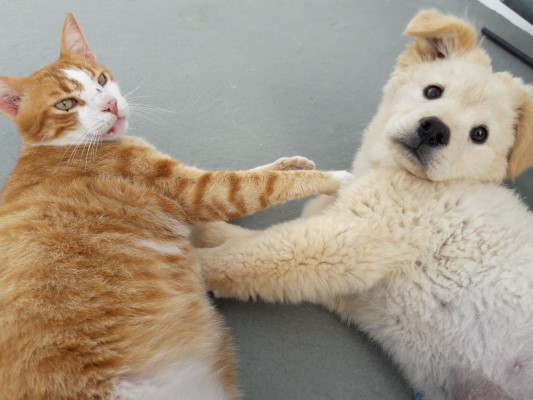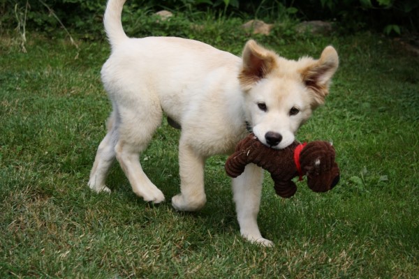verspielter Ersthund sein Gefährte in seiner neuen Familie werden.