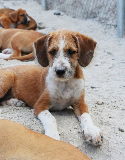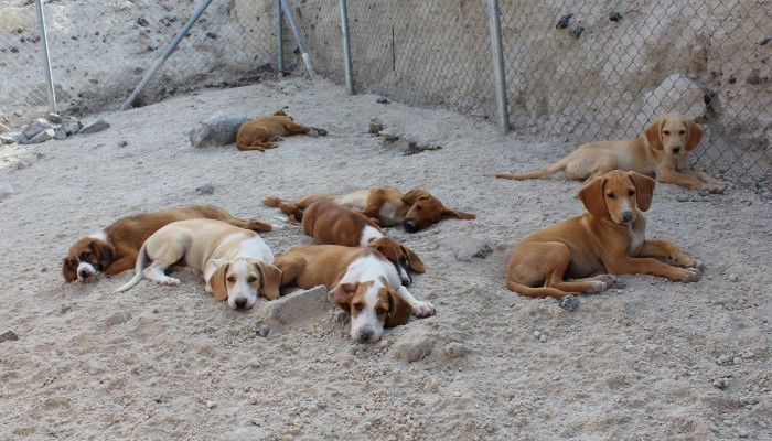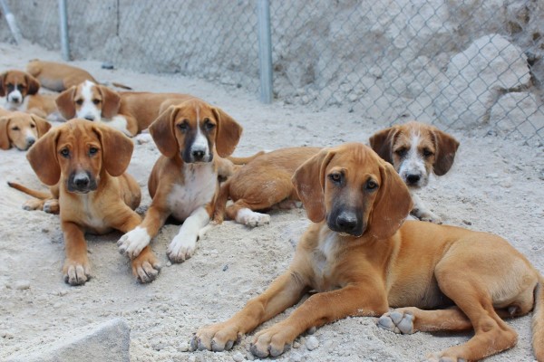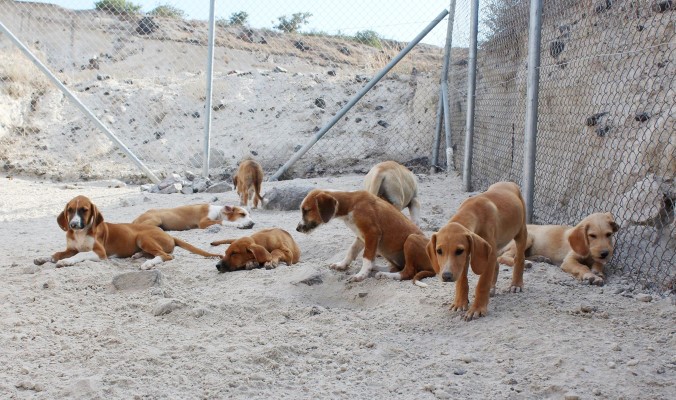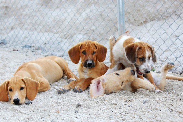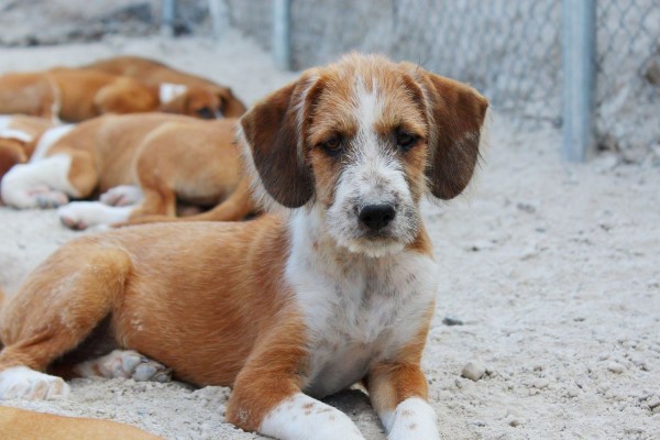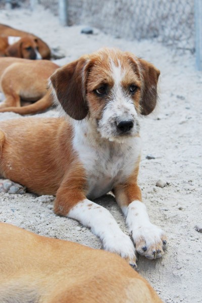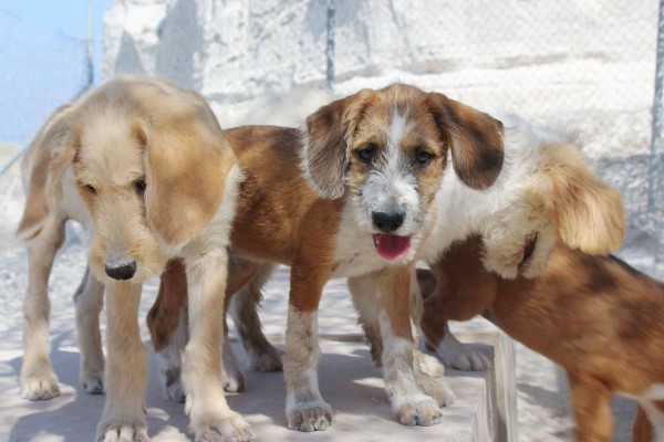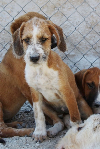 Welpen-Geschwistern, die im Tierheim auf Santorini Aufnahme gefunden