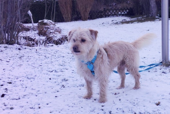 vor Fremden, vor allem vor Männern, anfangs Angst. Er bellt