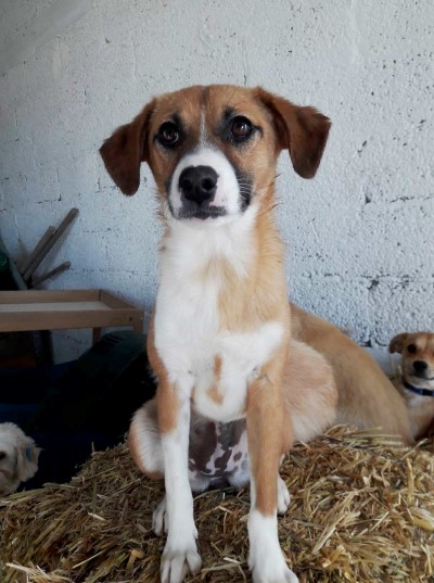 Junghündin mit einem sehr ehrlichen und freundlichen, anfangs leicht