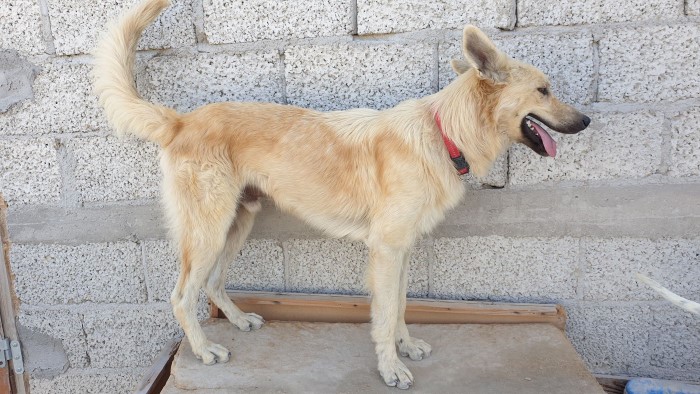 menschenbezogener lieber Mischlingsrüde. Er wurde völlig abgemagert