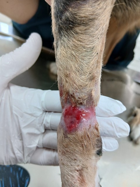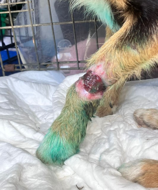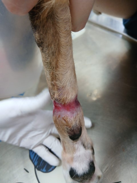 Ring an Haut am linken Vorderbeinchen. Die Wunde war nicht frisch,