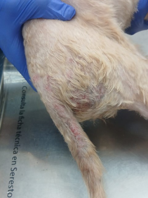 alles war geschwollen und die Hündin bekam Cortison und Marcos