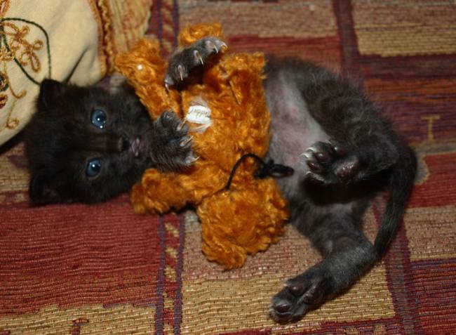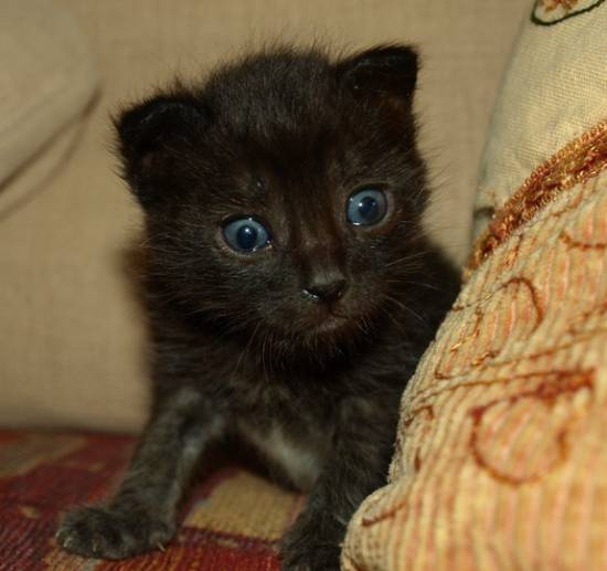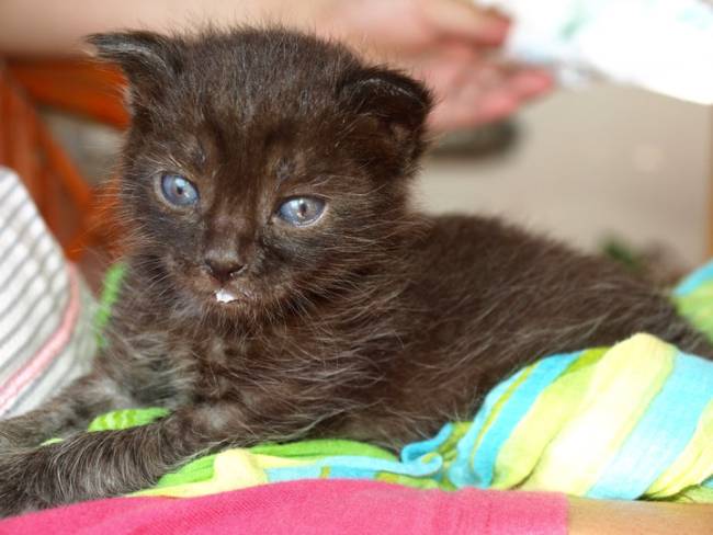 Schoß. Sie hatten ein kleines Katerchen in einer Mülltonne gefunden,
