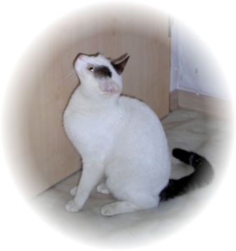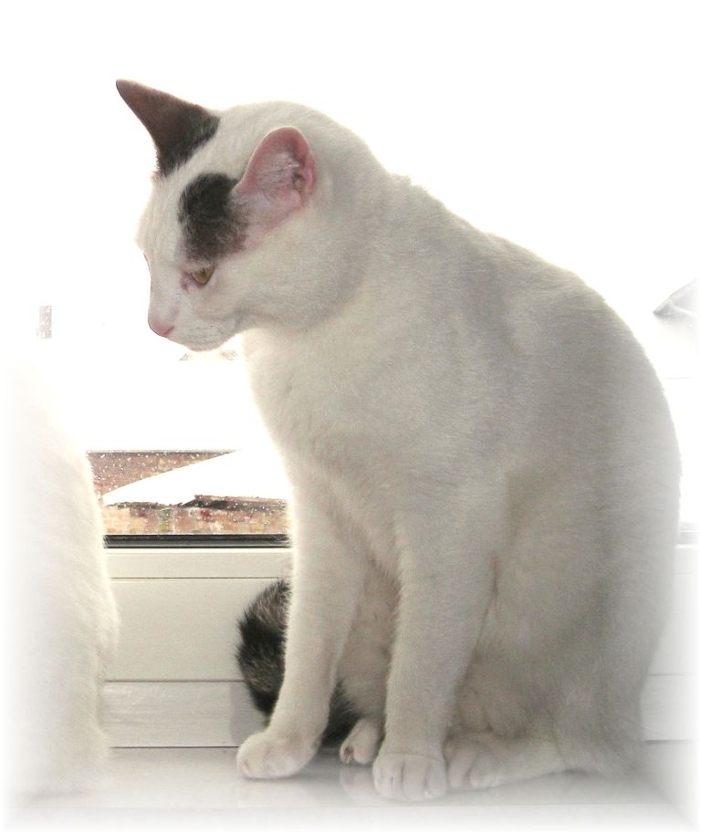 wunderschöner weißer Kater mit dunklen Flecken am Köpfchen und
