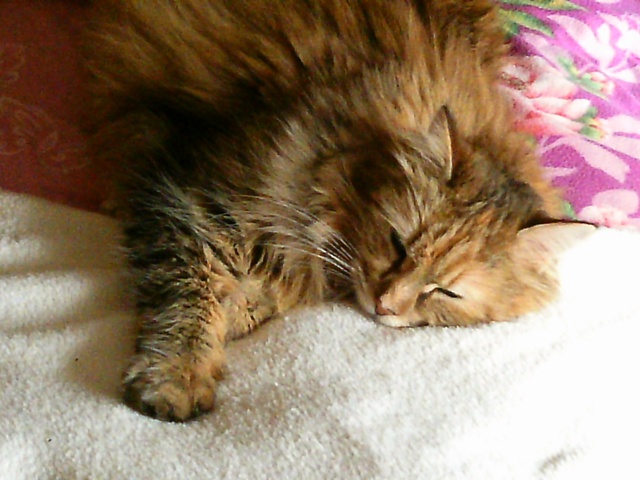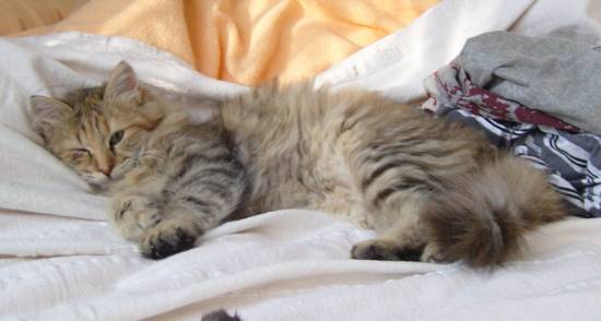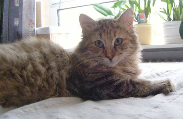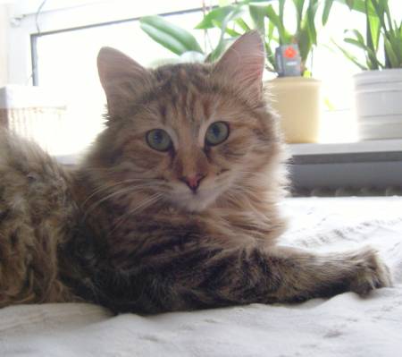 Baffy , eine bildhübsche getigerte Langhaarkatze, ist im Moment noch