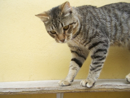 Weg, so wie er es macht, wenn eine andere Katze ihm blöd kommt.
