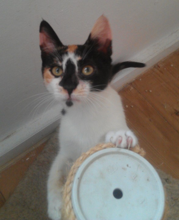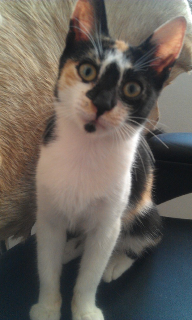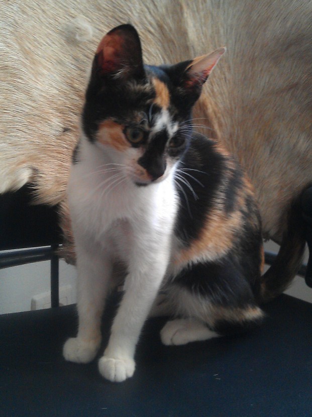 ,die hübsche dreifarbige Schmusekatze, kommt aus Santorini