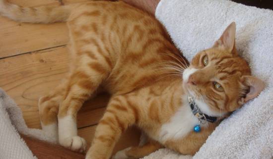 Tigerkater, der seinem Finder in Santorini einfach zugelaufen ist.