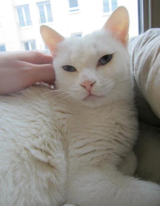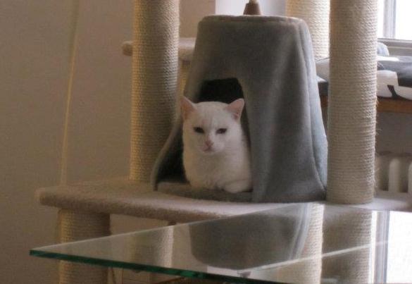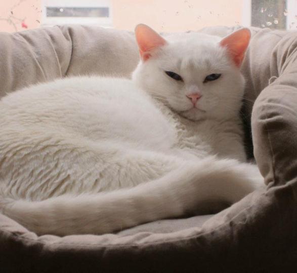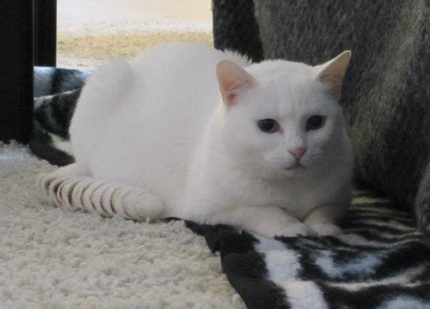 schneeweiß mit klaren blauen Augen. Sie ist in der Tat etwas