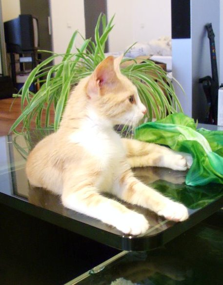 Spielen auf. Papierbällchen und eine Schnur sind zurzeit seine