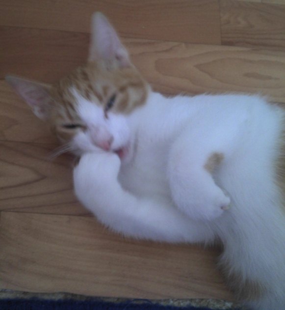 eine Kralle an der linken Pfote, die nach außen gewachsen ist. Diese