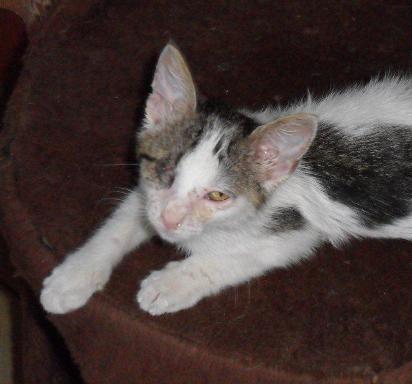 eine bildhübsch gezeichnete kleine Katze. Sie liebt Menschen und