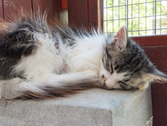 teilen sich einen Schlafplatz. Aida ist eine soziale Katze, die sich