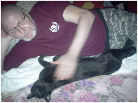 "Kleine" in seinem PC-Sessel sitzt und ich mich quer auf ihn legen