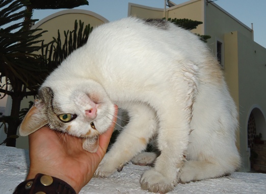 Nähe von Akrotiri auf Santorini. Zunächst wurden die drei Katzen