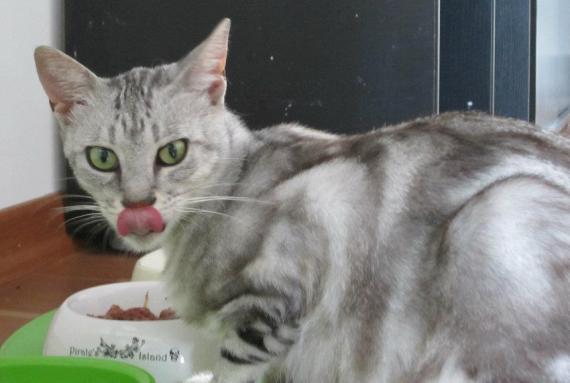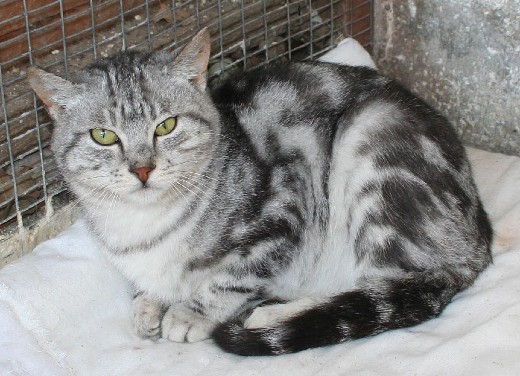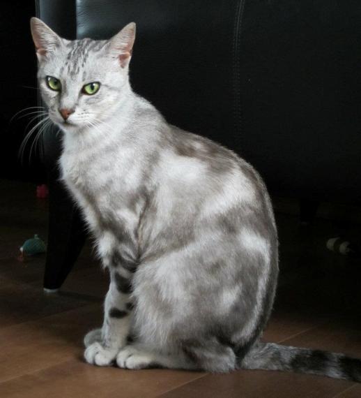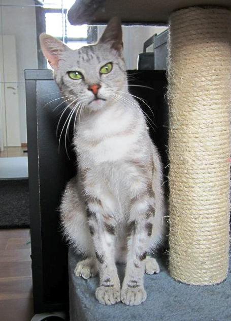 bildhübscher, schlanker Kater mit silbern glänzendem Fell und