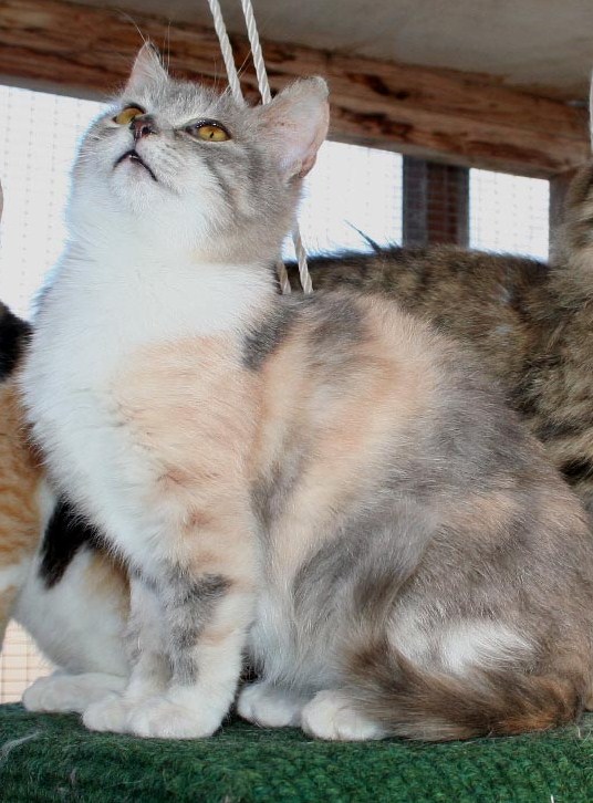 Duchess ist ein dreifarbiges "Glückskätzchen" aus Zakynthos. Sie hat das