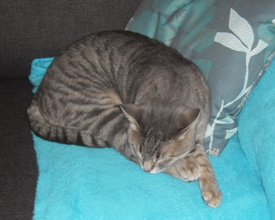 rollt sich genüsslich für die Streicheleinheiten zusammen. Wenn es